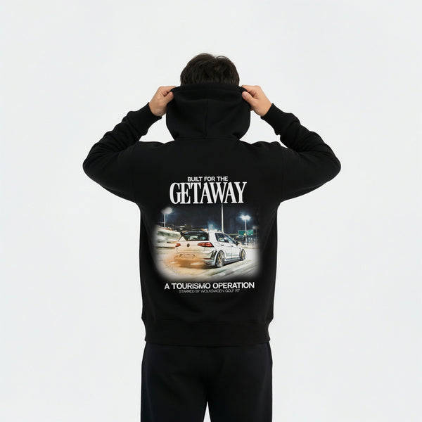 La nuit tombe, le moteur s’éveille. Le Sweat à capuche Golf 7R Getaway Edition capture l’essence d’une fuite parfaite : rapide, propre, silencieuse. Une pièce signée Tourismo pour les esprits libres et les accélérations nocturnes.